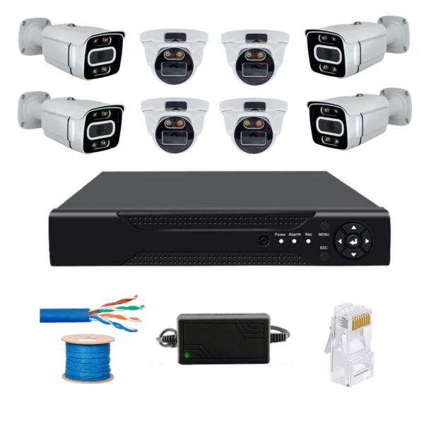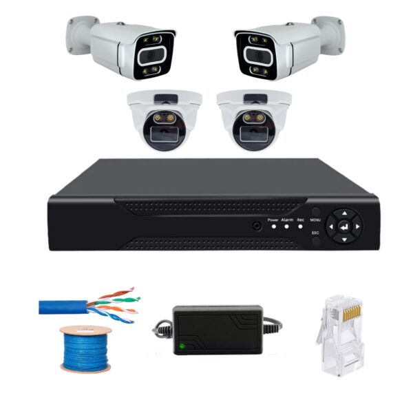 پکیج کامل مداربسته شش دوربین فلزی ضد آب 5 مگاپیکسل IP تحت شبکه با 60 متر کابل رایگان پلاکخوان اقتصادی و دید در شب رنگی