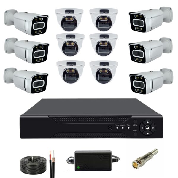 پکیج کامل مداربسته 10 عدد دوربین فلزی ضد آب 2 مگاپیکسل AHD با 100 متر کابل رایگان و دید در شب رنگی