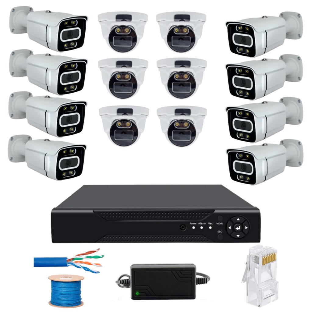 پکیج کامل مداربسته 16 دوربین فلزی ضد آب 5 مگاپیکسل IP تحت شبکه با 160 متر کابل رایگان پلاکخوان اقتصادی و دید در شب رنگی
